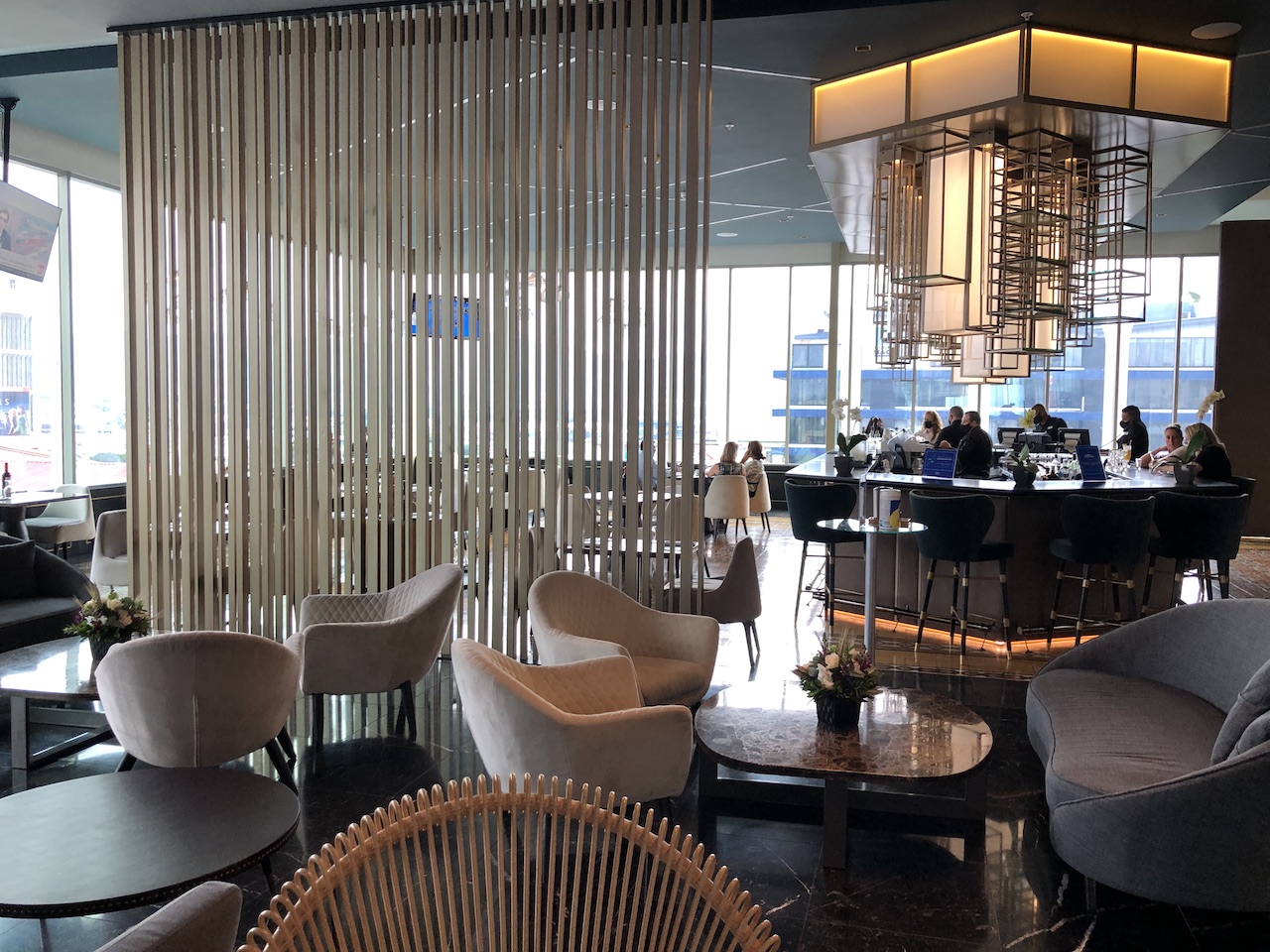 In der Lobby sind eine große Bar und das Hotelrestaurant, viele Sitzmöglichkeiten und ein Business Center.