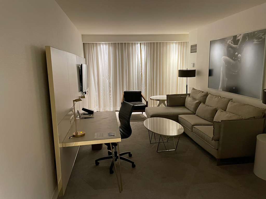 Das Delano ist ein schönes und ruhiges Hotel. Mit Virtuosovorteilen wird es immer mal wieder ein richtiger Preisbrecher und man kann tolle Deals abstauben. Die Suiten bieten viel Platz und man hat es nicht schwer, sich im Hotel wohlzufühlen. Die ruhige Lobby ist eine Oase und nicht zu vergleichen mit den Kasinohotels, in deren Lobby es manchmal zugeht wie in einem Zoo am Sonntagnachmittag.