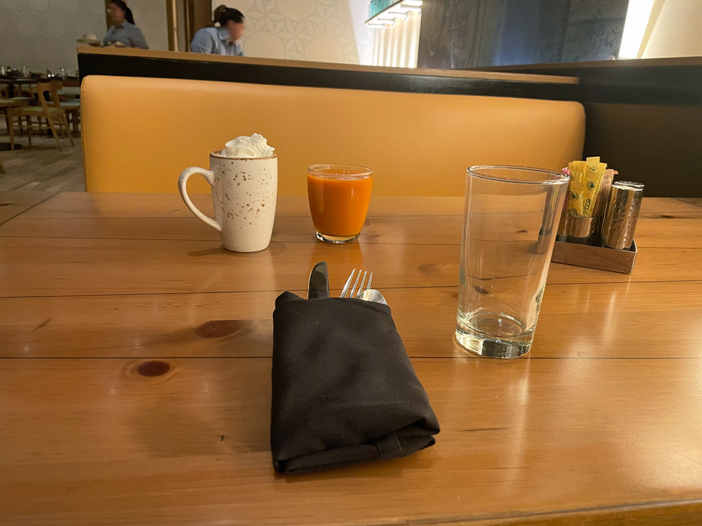 Ich hatte das Hotel über einen Virtuoso Reiseberater gebucht. Dadurch erhielt ich 100 USD Food & Beverage Guthaben für den Aufenthalt. Außerdem kamen noch jeweils 30 USD täglich für bis zu zwei Personen für ein Frühstück. Außerdem noch ein Zimmerupgrade bei Verfügbarkeit. Die 100 USD durfte ich in über 100 MGM Restaurants in Las Vegas einsetzen. Das Guthaben für das Frühstück hingegen nur im Della’s Kitchen oder an der hoteleigenen Kaffeebar.