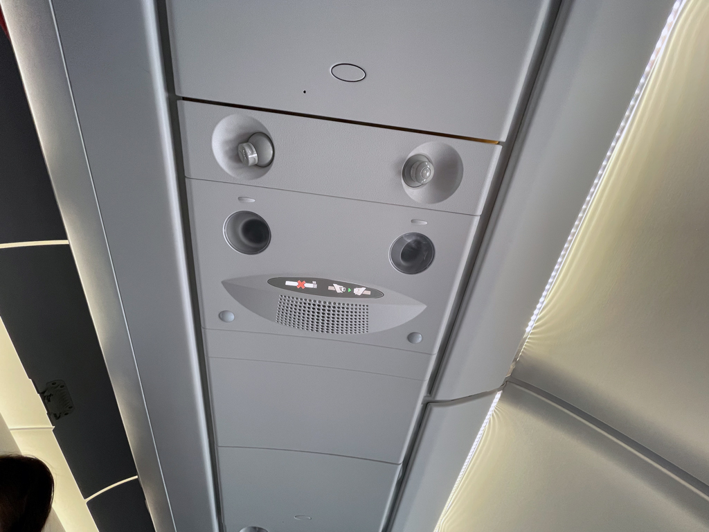 Danach hieß es „Shades down“. Das hat in den vorderen drei Kabinensegmenten ganz wunderbar geklappt, im letzten Segment brauchte ungefähr ein halbes Dutzend Passiere Erleuchtung und ließ die Fenster offen. Die Crew hat das nicht weiter interessiert.