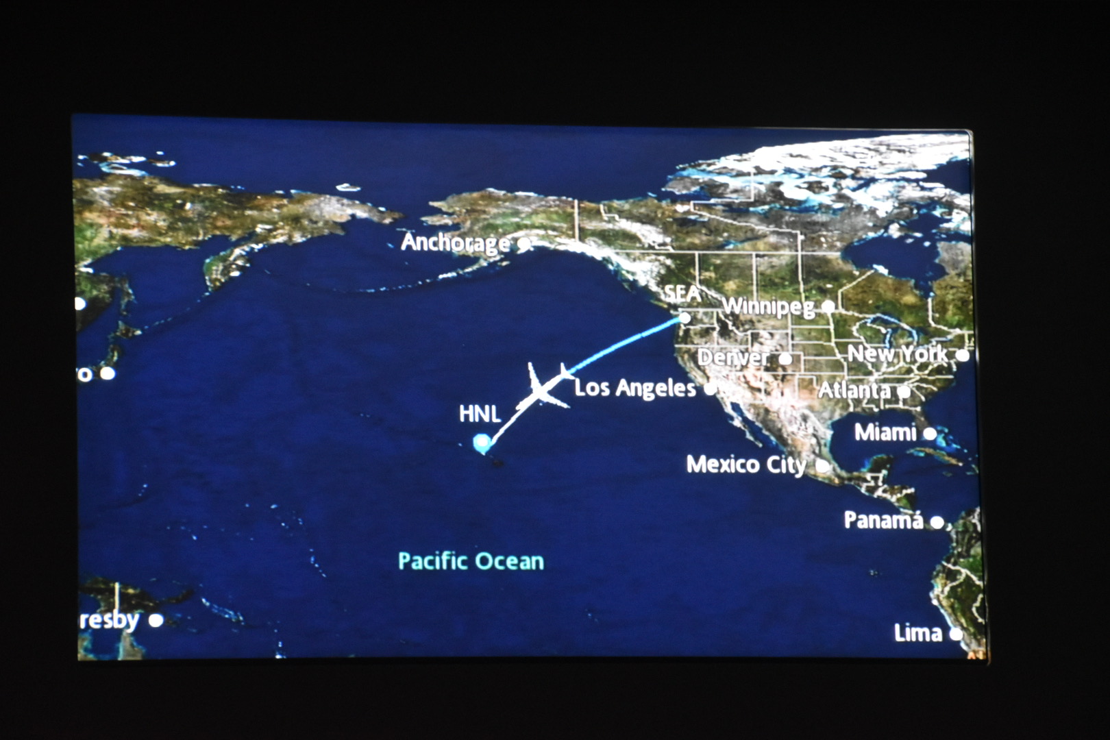Die Besatzung war in Honolulu stationiert und empfing uns mit einem Aloha, die weiblichen Mitglieder hatten Blumenblüten im Haar. Am Boden wurden wir nach unseren Essenswünschen gefragt, es gab keine Speisekarten und die Flugbegleiter mussten geduldig jedem Gast die drei Gerichte beschreiben.