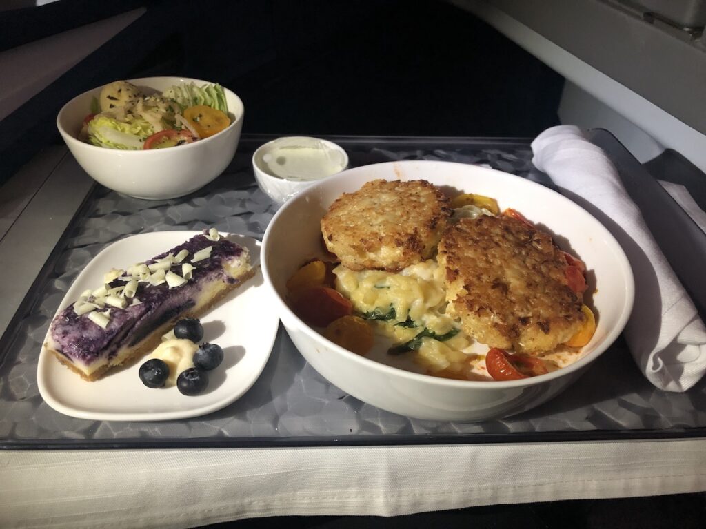 Die Mahlzeit war von der Portion ausreichend, nett angerichtet und geschmacklich in Ordnung. Von einem Highlight kann man jedoch nicht sprechen. Wir hatten Crab Cakes als warmen Hauptgang und ein Charcuterie-Board mit ziemlich langweiliger Salami und Käse.