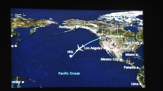 Diesmal geht es als Tagflug nach Honolulu, auf einigen Strecken wie von Seattle werden regelmäßig Airbus A330 mit dem Business Produkt Delta One eingesetzt. Der breitere Langstreckenjet ist in einer 1-2-1 Konfiguration bestuhlt und bietet flache Betten. Auf der fast 6-stündigen Reise mitten am Tag kein Muss, aber eine spürbare Steigerung des Komforts.