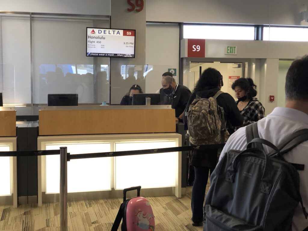 Ich hatte erneut Probleme beim online Check-In und wollte zudem meine Vielfliegernummer korrigieren lassen, da ich beschlossen hatte den Trip bei Delta Skymiles kreditieren zu lassen. Ich musste also zum Schalter, wo die Wartezeit zum Glück nur sehr kurz war. Eine Mitarbeiterin winkte mir zu und konnte mir innerhalb weniger Augenblicke helfen.