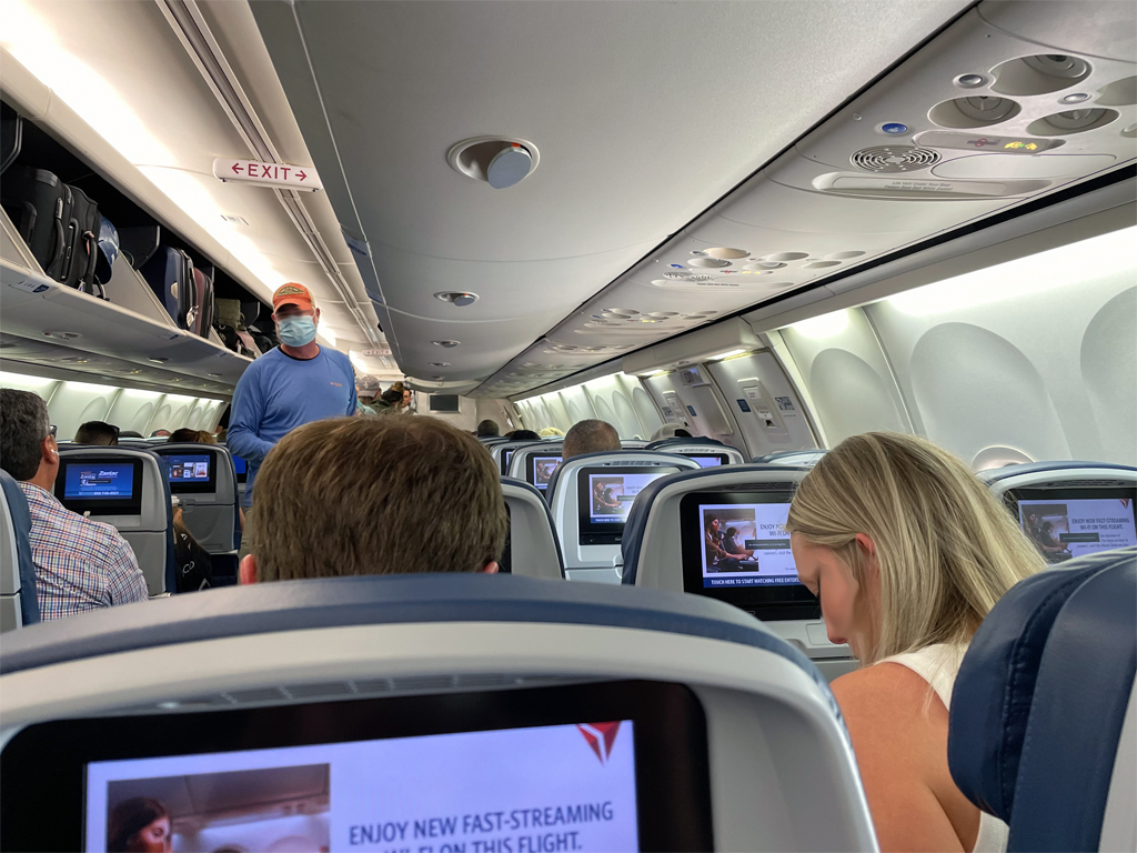 Aus reiner Freundlichkeit hat der Mitarbeiter von Delta meinen Sitzplatz fünf Reihen nach vorne verlegt. Dadurch könne ich beim Umsteigen gegebenenfalls wertvolle Minuten einsparen. Mit einer guten Stunde war meine Umstiegszeit in Atlanta nicht gerade üppig bemessen.
