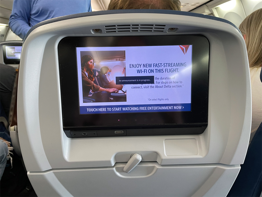 Reisende mit Lufthansa sind sicherlich überrascht, auf einem kurzen Inlandsflug die Rubrik „Entertainment“ zu lesen. Delta geht hier einen ganz anderen Weg als der Kranich und spendiert allen Sitzen in der Economy Class 11 Zoll Monitore. Zudem werden In-Ear-Kopfhörer verteilt, so dass alle Reisenden das Unterhaltungsprogramm nutzen können. Über den Touchscreen können Filme, Serien, Musikalben und vielen mehr ausgewählt werden. Die Auswahl ist ähnlich groß wie bei internationalen Flügen, nur dass es auf Inlandsflügen weniger internationales Programm gibt. Dafür die z.B. die Auswahl an HBO oder Hulu Serien größer als auf Langstreckenflügen.