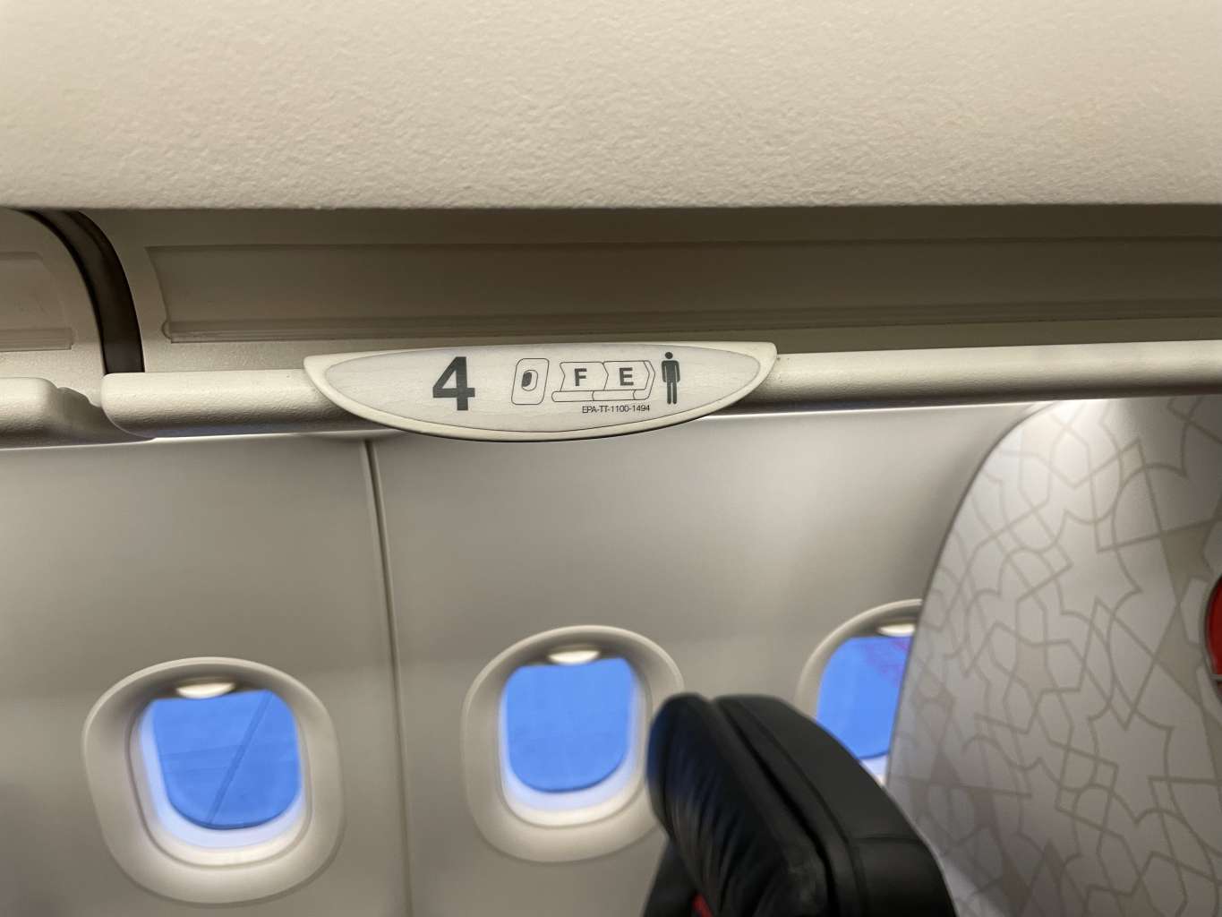 Mein ursprünglich reservierter Sitz wurde von einer älteren Dame besetzt. Mein Nebensitz in Reihe 4 blieb frei. Daher wechselte ich wie beim Hinflug auf den Fenstersitz 4F. Warum ich nicht sofort den Fenstersitz buche? Ich mag es während des Fluges mobil zu sein. Typischerweise gehöre ich nicht zu denjenigen, die sofort nach dem die Anschnallzeichen erloschen sind, auf die Lavatory rennt. Aber ich finde es gut, wenn ich einfach aufstehen kann, um an mein Gepäck zu kommen, ohne zuvor jemanden aufstehen zu lassen.