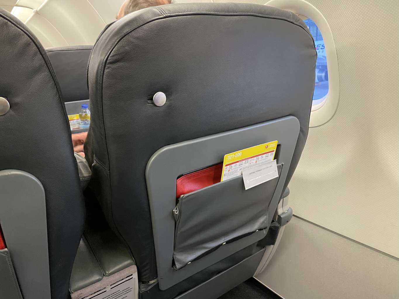 Ich wanderte also mit meinem neuen Bordkartenabschnitt die Fluggastbrücke hinunter und stieg an Bord des Airbus A321 mit der Registrierung TC-JRY. Und da wurde mir bewusst, dass Turkish Airlines ja auch noch diese älteren Lederssessel mit den ausklappbaren Ledersesseln in der Business Class haben kann.