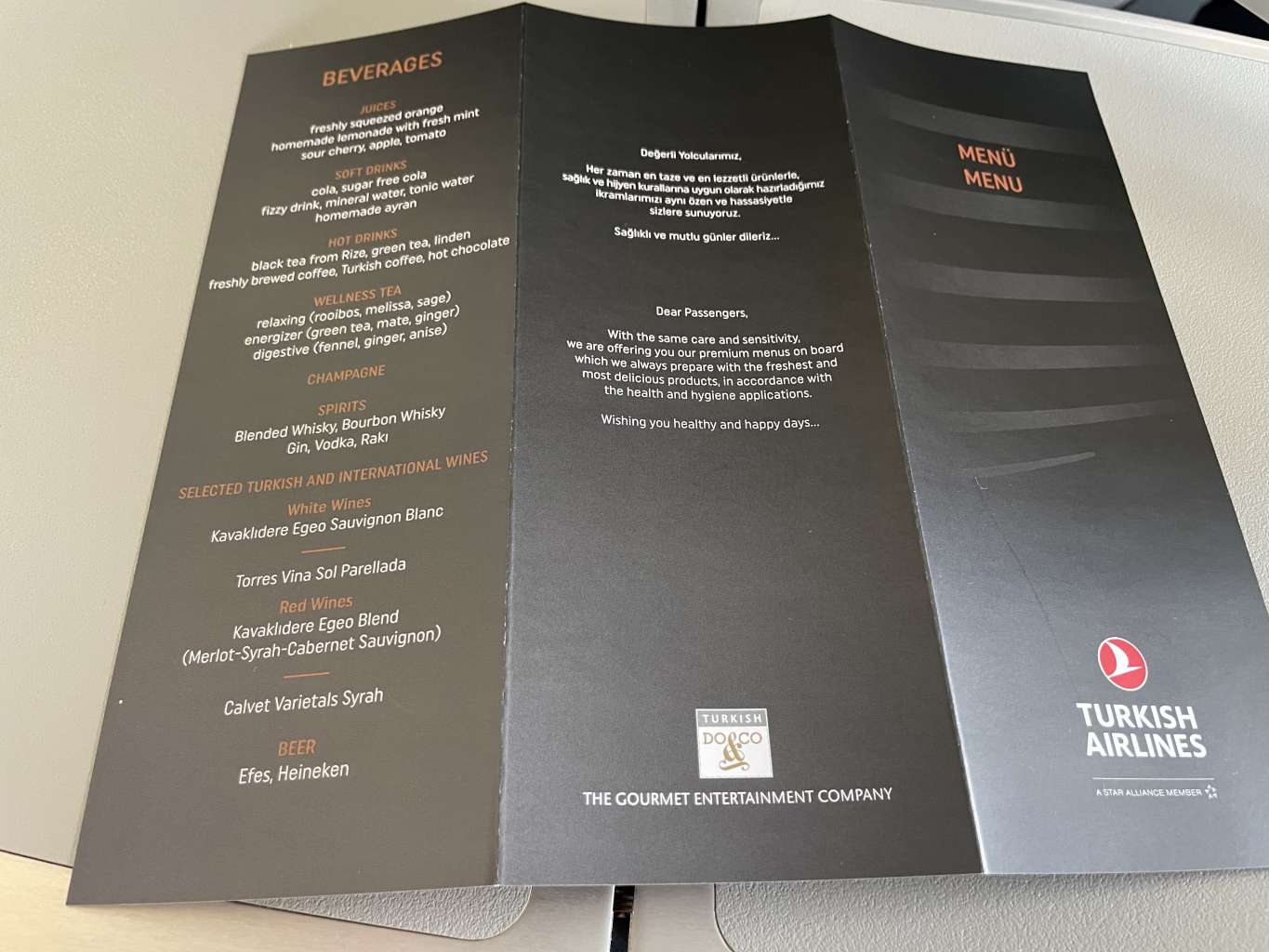 Auch in der Frühe serviert Turkish Airlines in der Business Class Champagner aus dem Haus Monopole Heisieck Champagner sowie lokale und internationale Weinsorten. An Biersorten stehen Efes und Heineken zur Auswahl und mit Whisky, Gin, Vodka und Raki gibt es auch eine kleinere Auswahl an Spirituousen.