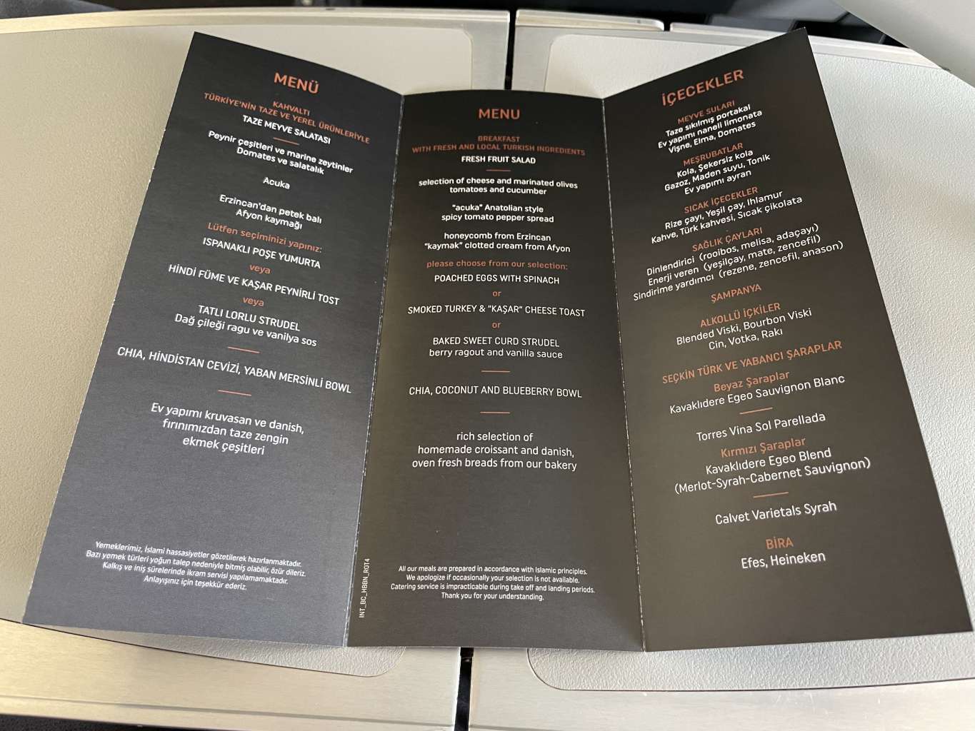 Frühstück ist mir auf Flügen normalerweise überhaupt nicht wichtig. Aber ich hatte ziemlichen Hunger und zeitgleich Sorgen, dass nur Kohlenhydrate serviert werden. Doch auch zum Frühstück bietet Turkish Airlines ein Vier-Gänge-Menü mit drei Optionen als Hauptspeise an. Dadurch ist eigentlich für jeden Geschmack immer etwas dabei.