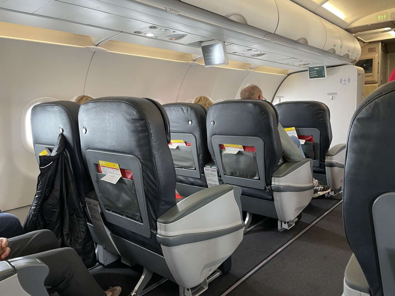 Während die Economy Class füe einen Airbus A321 typisch pro Reihe mit drei Sitzen auf der linken und drei Sitzen auf der rechten Flugzeugseite konfiguriert ist, finden in der Business Class nur zwei plus zwei Sitze Platz.