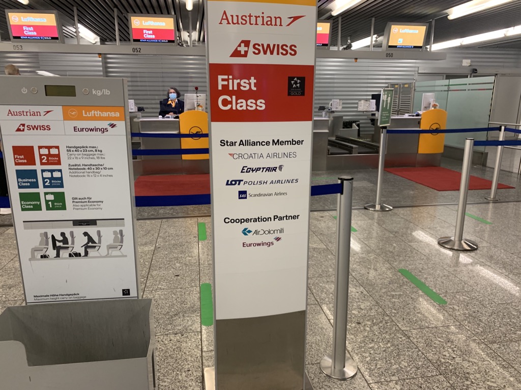 Da es sich bei diesem Flug nicht im einen klassischen Eurowings Discover Flug gehandelt hat, sondern im Endeffekt um einen Lufthansa Codeshare Flug von Air Dolomiti, habe ich einfach am Lufthansa Schalter den Check-In gemacht. Am First Class Check-In in der Halle in Frankfurt findet man nun aber auch den Hinweis auf Eurowings Discover, sodass man hier wohl auch als HON Circle Member, Senator und Star Alliance Gold Member für normale Eurowings Discover Flüge einchecken kann.