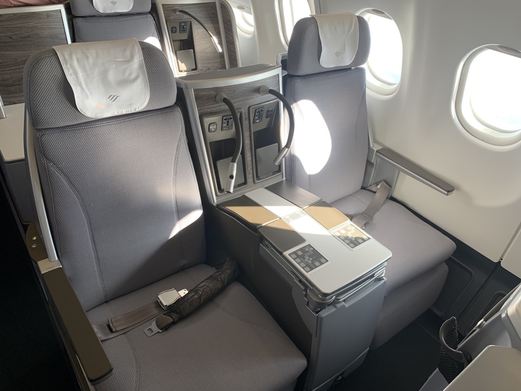 Mein Sitz 3A war hingegen ein Thron Sitz, bei welchem man links und rechts neben dem Sitz jede Menge Ablageflächen hat. Gerade für Alleinreisende ist dies ein toller Sitzplatz, mit viel Freiraum.