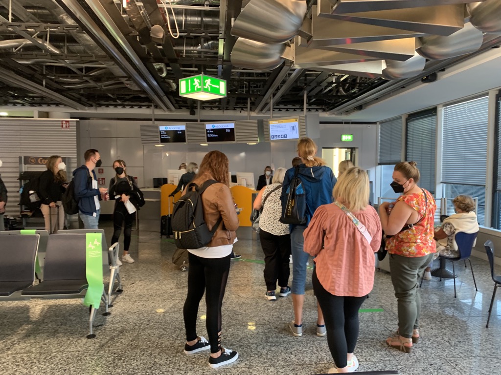 Als ich am Gate angekommen bin, hatte sich hier auch schon eine große Traube an Menschen gebildet und man merkte schnell, dass dieses Bus Gate eigentlich nicht für den 315 Passagiere fassenden Airbus A330-300 von Eurowings Discover ausgelegt ist, insbesondere da dieser Flug in der Economy Class auch komplett ausgebucht war.
