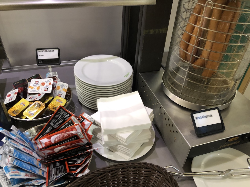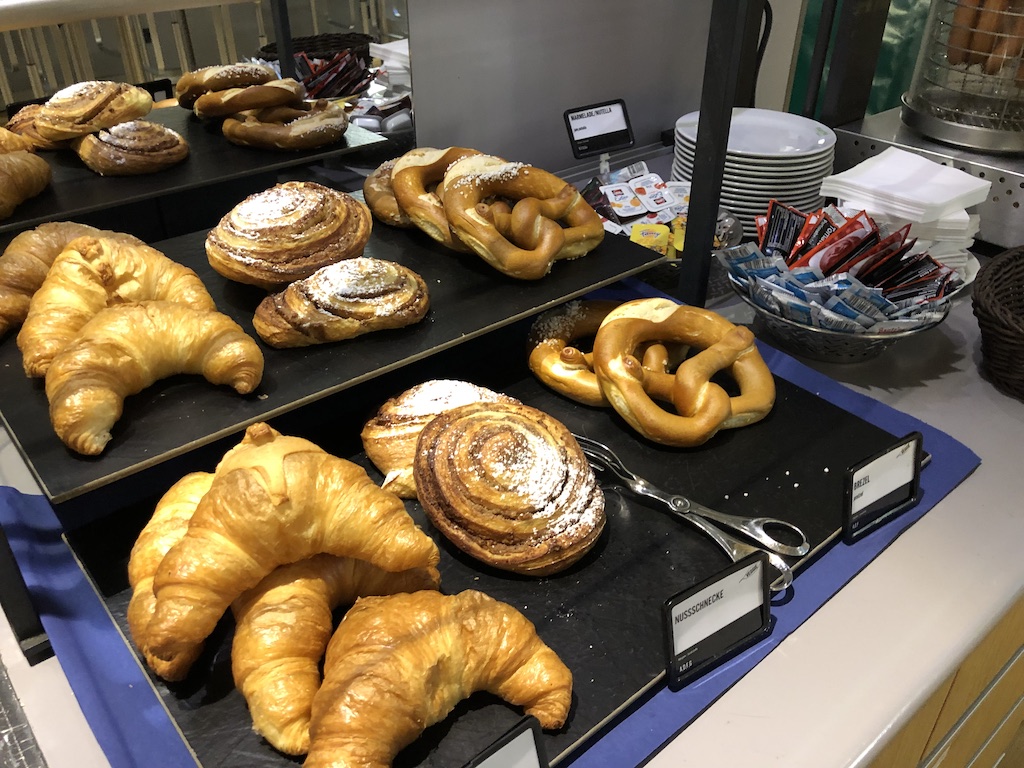 Neben Brötchen gab es auch Nusschnecken, Croissants und Brezeln. Die Backwaren stammen vom Anbieter, der auch das Restaurant außerhalb betreibt. Die Qualität ist entsprechend gut.