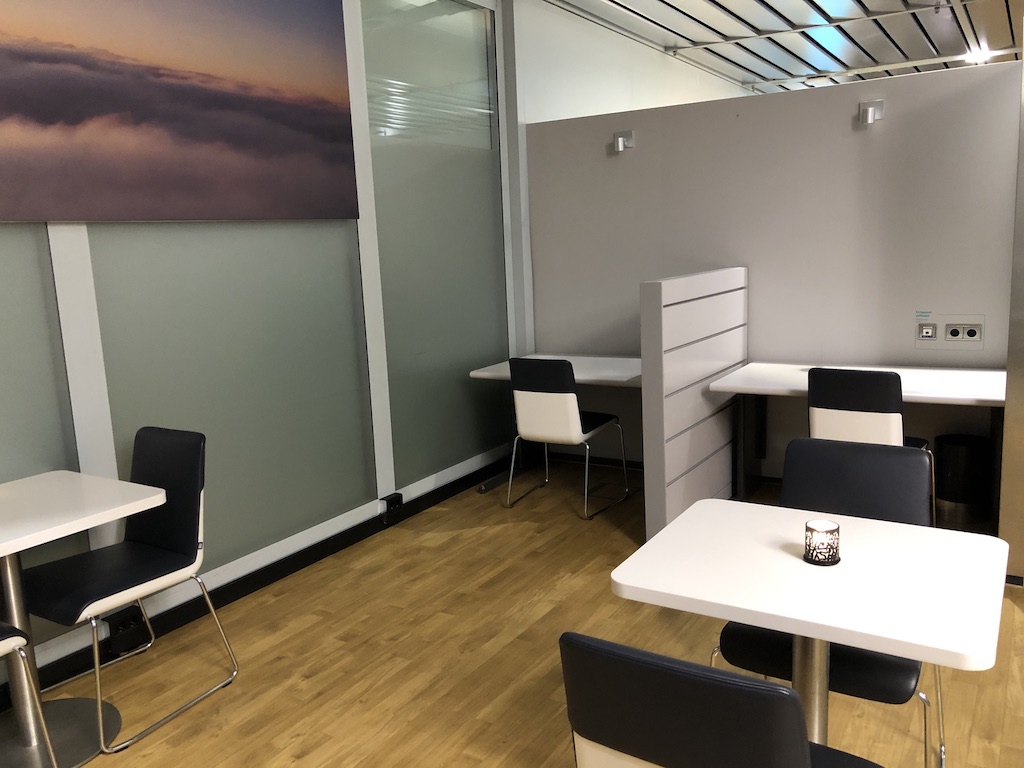 Tische, Tresen, Sessel und Buffet wurden überwiegend von Lufthansa übernommen, einige Deko-Elemente sind neu. Die Lounge ist nicht gerade riesig, schätzungsweise können im Haupt- und Nebenraum etwa 40 Fluggäste Platz nehmen.