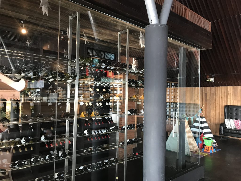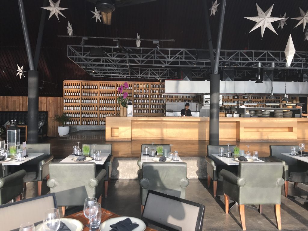 Hinter der Terrasse und den überdachten Sitzmöglichkeiten befand sich die bereits erwähnte offene Küche mit Aquarien, an denen man sich sein Seafood im lebendigen Zustand aussuchen konnte. Auch das, war für uns eine ganz neue interessante Erfahrung. Neben der offenen Küche, gab es noch eine große offene Bar, mit beeindruckender Weinauswahl.