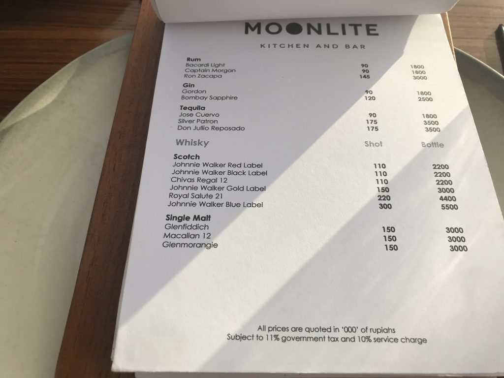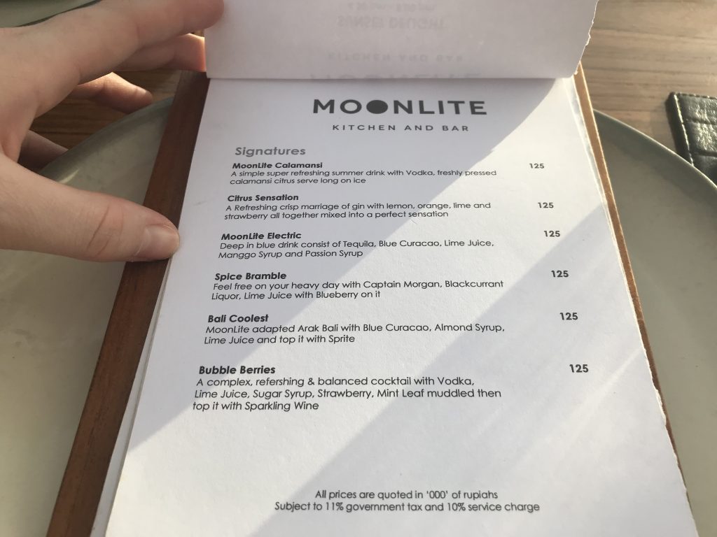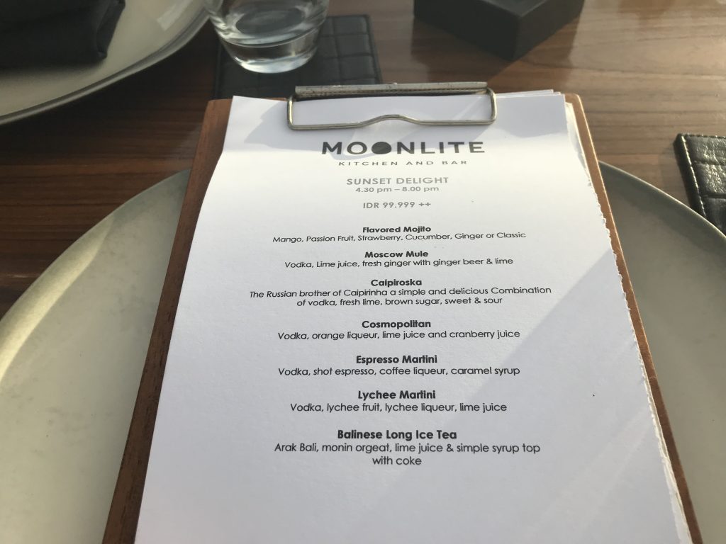 Das Dinner in der MoonLite Kitchen and Bar war definitiv eines unserer schönsten Dinner, die wir je hatten. Der Ausblick, das Essen, der Service und die Musik waren sehr stimmig. Auch die Qualität der Spisen und Getränke hat uns absolut beeindruckt. Wir werden bei unserem nächsten Bali Besuch definitv wieder einen Tisch für ein Sonnenuntergangs-Dinner in der ersten Reihe reservieren.