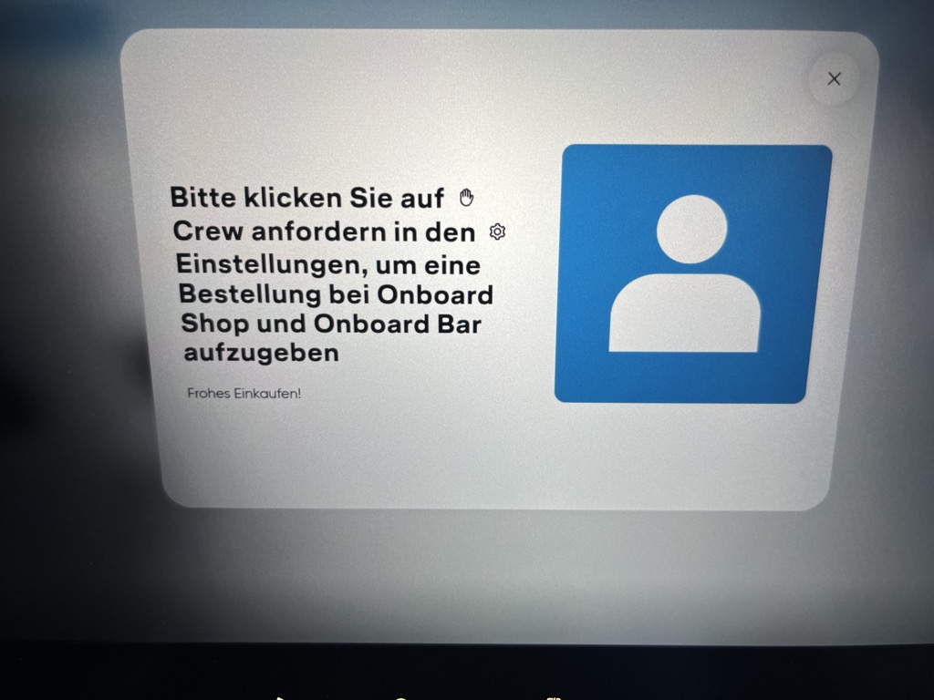 Über das System kann man auch einen Serviceruf absetzen, aber keines der angebotenen Produkte der Onboard Bar direkt bestellen, das können andere Systeme deutlich besser. Somit muss für die Bestellung der Flugbegleiter zum Sitz kommen und dann nochmals zur Zahlung und Lieferung. Eine Bezahlung am System scheint aktuell ebenfalls nicht möglich zu sein.