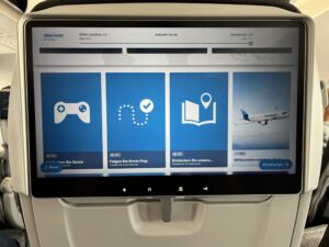 Das System lässt sich relativ intuitiv bedienen und verfügt über ein Hauptmenü, aus dem alles erreichbar ist. Generell gibt es im Menü die Kategorien Filme, Airshow, Spiele, Podcasts, Destination Info, Onboard Bar und weitere Informationen zum System, sowie eine Umfrage. Was mir fehlt, ist eine Kategorie Musik.