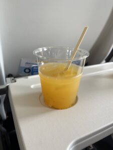 Der Service variierte stark mit der Größe der Business Class und die fehlerhafte Beladung hat nicht zu einem besseren Service beigetragen, da die Crew hier viel improvisieren musste. Wenn man als Vielflieger den eigentlichen Servicestandard kennt, ist man natürlich enttäuscht, wenn Komponenten wegfallen. Gerade bei 4,5 Stunden Flugzeit kann mit einem guten Ablauf viel bewirkt werden. Das Catering war eigentlich in Ordnung, gefühlt geschmacklich besser und optisch attraktiver als auf einem vergleichbaren Flug des letzten Jahres der noch von LH selbst durchgeführt wurde, aber: Bei Lufthansa gab es eine Menükarte und eine Auswahl im Hauptgang, was zu mehr Freude bei den Kunden führen könnte. Insbesondere, wenn der Hin-, wie auch der Rückflug ein Lunch oder Dinner beinhaltet, sollte eine Auswahl einfach umsetzbar sein, ohne viel Foodwaste zu Produzieren – hier sollte das Produktmanagement nochmals ran.