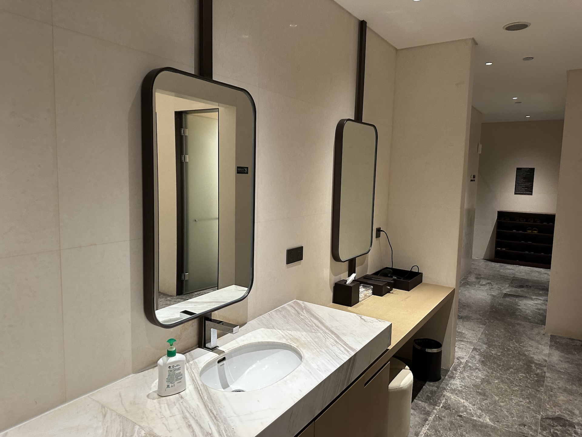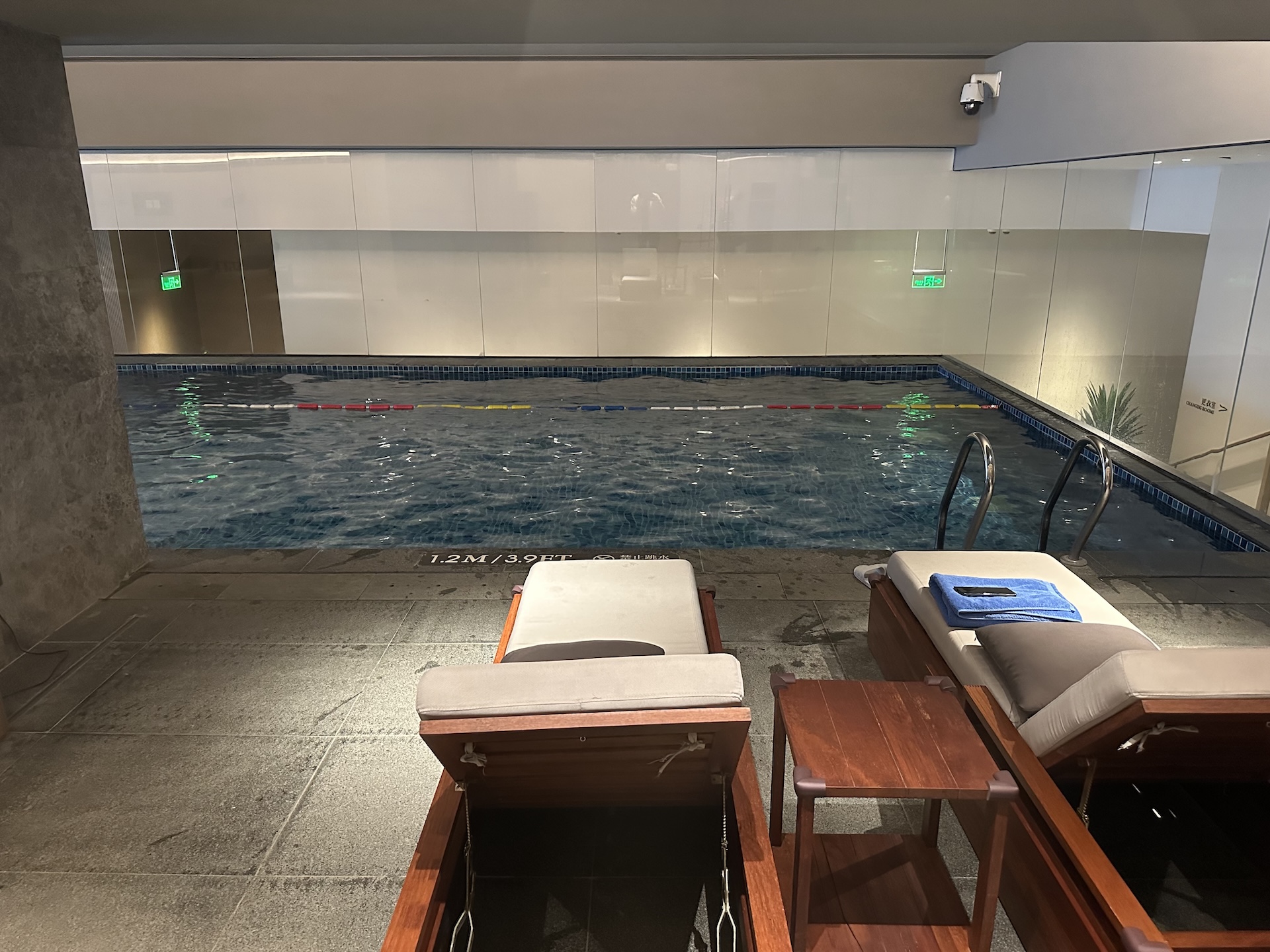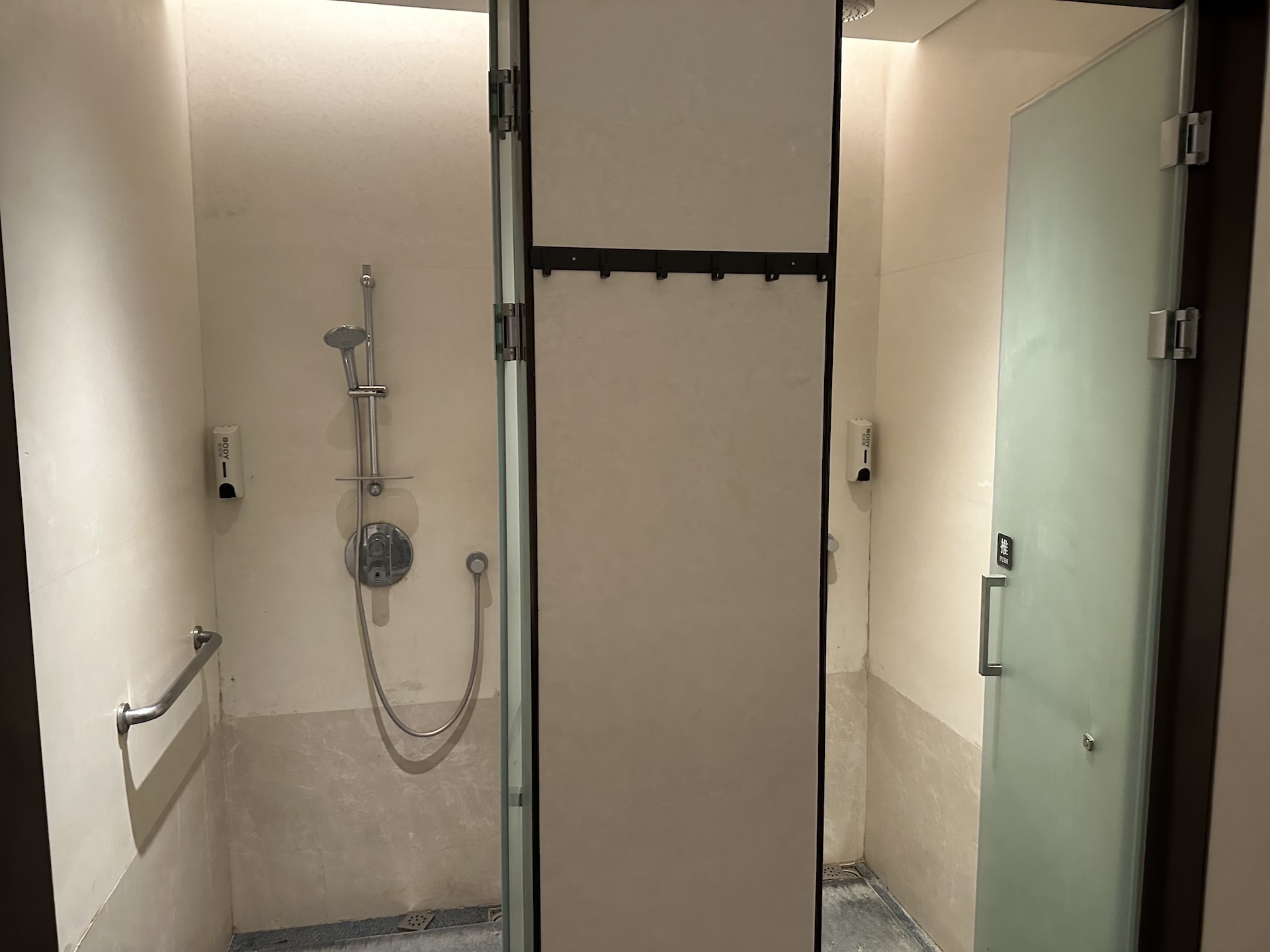 Daneben befindet sich der Spa-Bereich. Da es hier auch Umkleidekabinen, Duschen und Schließfächer gibt, kann man das Hotel gut auch noch bis zum Abend nutzen und sich z.B. vor einem Nachtflug erfrischen.