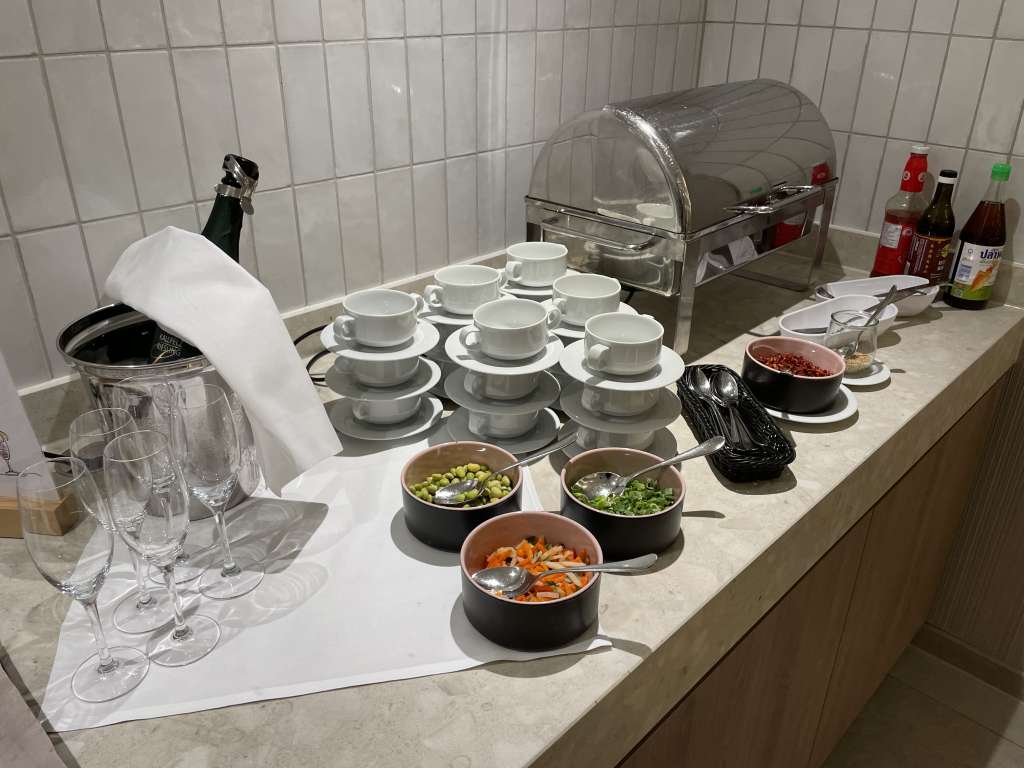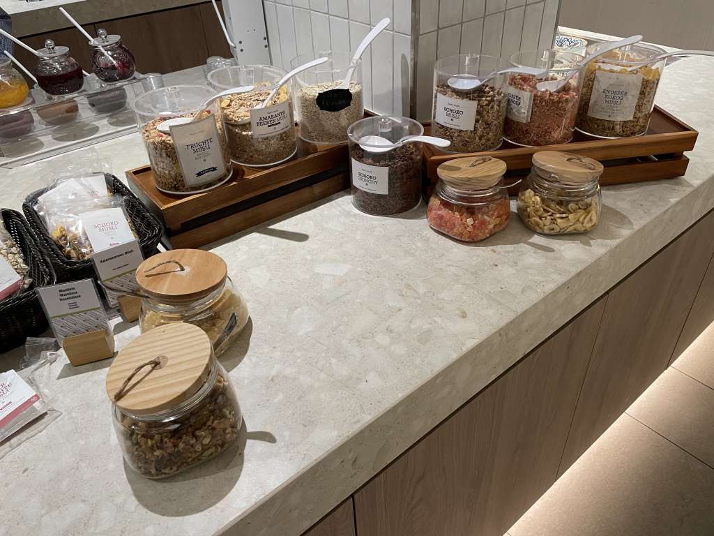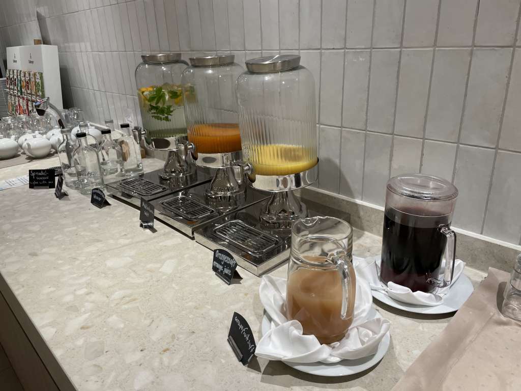 Ich war dazu eingeladen, das Frühstücksbüfett kostenlos zu nutzen – ein Vorteil des Hilton Honors Diamond-Status. Der Frühstücksraum befindet sich im Erdgeschoss im hinteren Bereich der Lobby, wobei das Büfett direkt linker Hand aufgebaut ist.