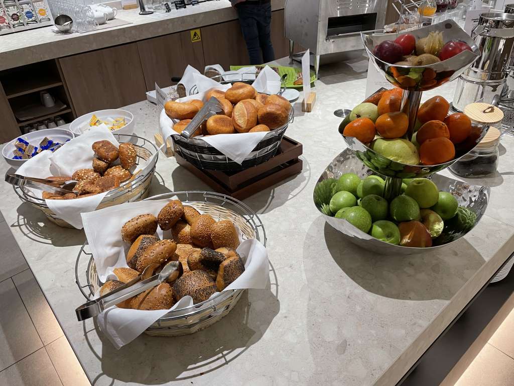 Meiner Bewertung nach kein opulentes, aber ein doch vollständiges Frühstücksbüfett. Es gab eine Auswahl an Backwaren, Obst, Joghurts, Müslis, Wurst- und Käseaufschnitt sowie einzelne warme Optionen, aber nichts davon stach durch besondere Qualität oder Vielfalt hervor. Allerdings gab es Details, die bei Hotelfrühstücken nicht selbstverständlich sind: eine asiatische Ecke, Lachsaufschnitt und sogar Sekt. Nicht-alkoholisch ging es am Kaffeeautomaten, der Tee- und Saftstation zu.