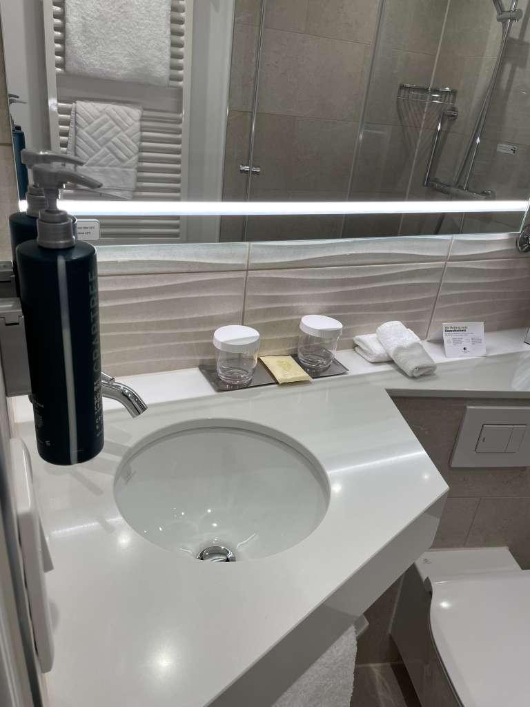 Das Hotel hat angefangen alle Bäder zu erneuern – die Deluxe Zimmer zur Bahnhofsseite in der 4. Und 5.Etage sind schon fertig.