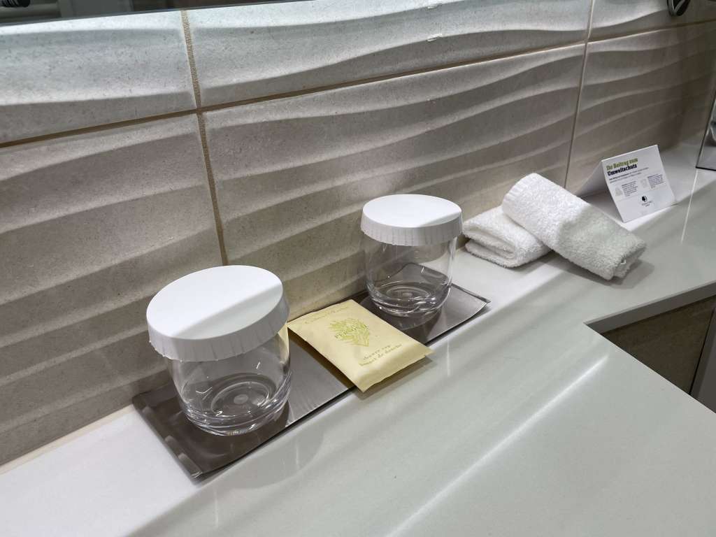 Das Badezimmer wäre für mich schon ein Grund, im DoubleTree by Hilton nicht länger als eine Nacht einzukehren. Aber da dieser Aufenthalt ohnehin kurz war, arrangierte ich mich mit dem kleinen Bad, das immerhin mit Pflegeprodukten von Crabtree & Evelyn ausgestattet war.