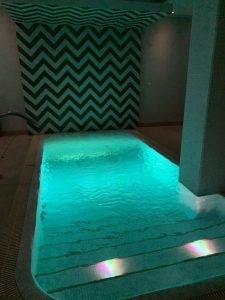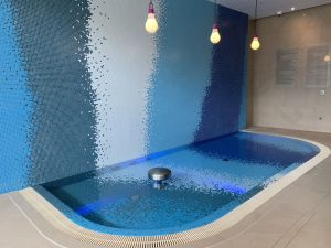 Rezeption und Umkleideräume teilt sicher Fitness-Bereich mit den Pool- und Sauna-Landschaften, welche sich auf gleicher Ebene befinden. Nach den Umkleideräumen, in denen Ihr auch Spinde und Duschen findet, kommt man zum Pool-Bereich.