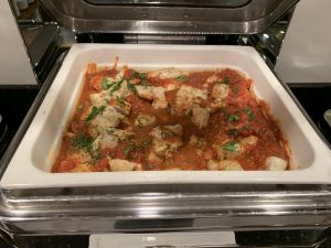 Unseren zweiten Besuch statteten wir der Executive Lounge während der Cocktail Hour ab. Die Auswahl an alkoholischen Getränken konnte dabei weniger Punkten. Es gab an Spirituosen lediglich einen Grant’s Whiskey, Finsbury Gin, Campari und polnischen Wodka (immerhin auf Eis!). Auch wenn es sowohl Weißwein wie auch Rotwein gab, waren die geschmacklich ebenfalls keine Offenbarung. Bier wurde leider nur in einem Kühler mit wenig Eis halbherzig nachgefüllt.