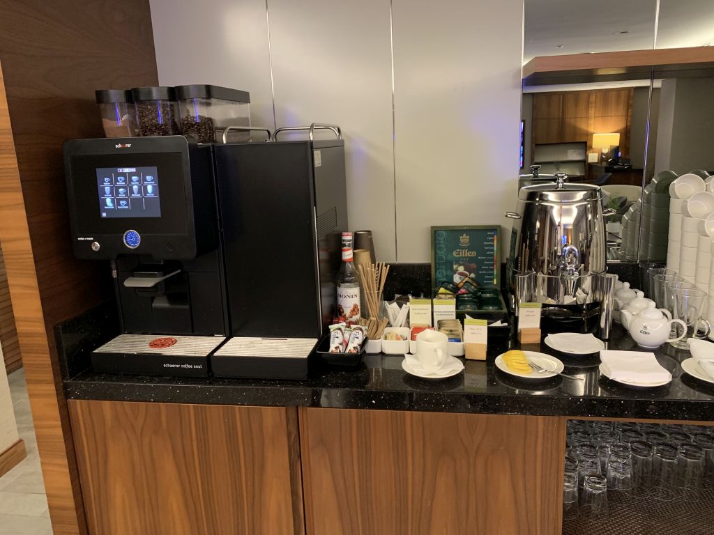 Bei unserem ersten Besuch am späten Abend waren noch ein paar Snacks, wie Chips und Nüsse, und Kuchen aufgebaut. Leider flogen um die Kuchen schon einige Fruchtfliegen herum, was weniger appetitlich war. An Softdrinks und Kaffee konnten wir uns ebenfalls noch bedienen, denn diese stehen von 11:00 bis 23:00 Uhr kostenfrei zur Verfügung.