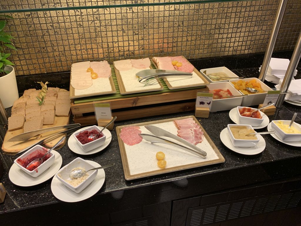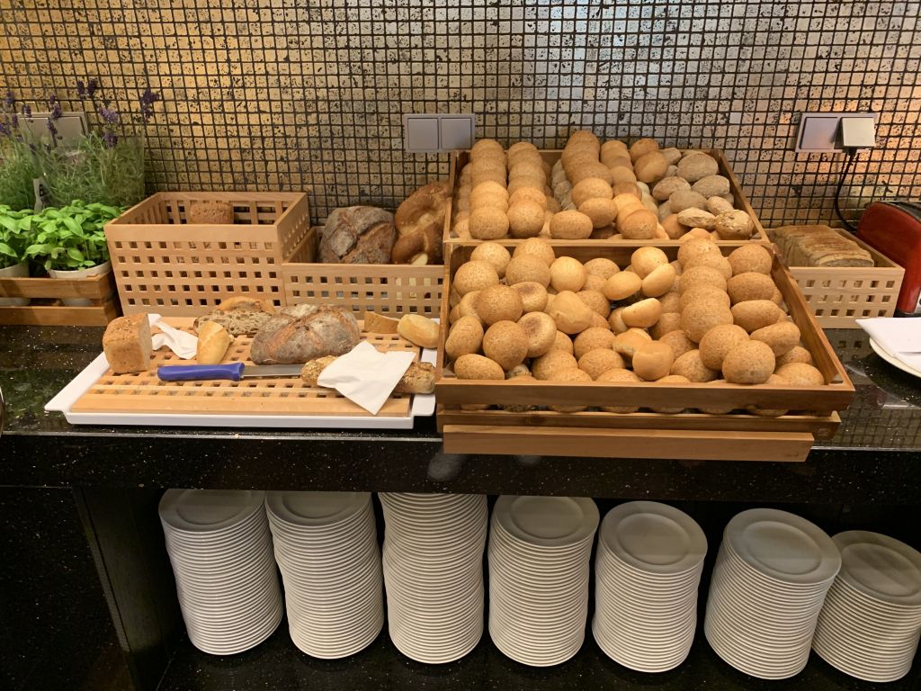 In eine separaten Ecke findet man diverse Sorten an Brot und Brötchen. Belegen könnt Ihr diese mit einer Auswahl an Wurstsorten, Käse, Fisch und Marmeladen. Schinken konnten wir uns selbst in feinen Streifen vom Stück schneiden.