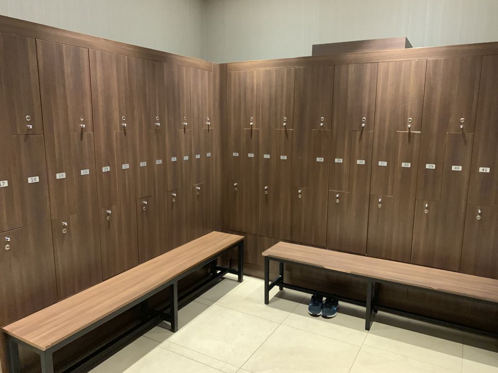 Rezeption und Umkleideräume teilt sicher Fitness-Bereich mit den Pool- und Sauna-Landschaften, welche sich auf gleicher Ebene befinden. Nach den Umkleideräumen, in denen Ihr auch Spinde und Duschen findet, kommt man zum Pool-Bereich.