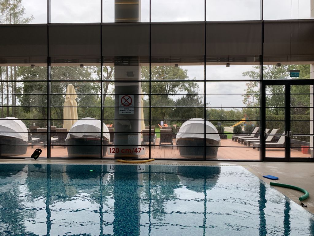 Neben dem großen Pool gibt es noch ein Planschbecken für Kleinkinder, sowie eine Sauna. Bei unserem Besuch war es dort extrem voll und laut. Es gab keine sauberen Handtücher und alle Liegen im inneren waren belegt. Es uns auf einer der Liegen im Außenbereich bequem zu machen, kam auf Grund der Temperaturen nicht in Frage.