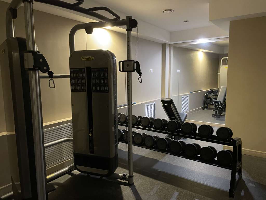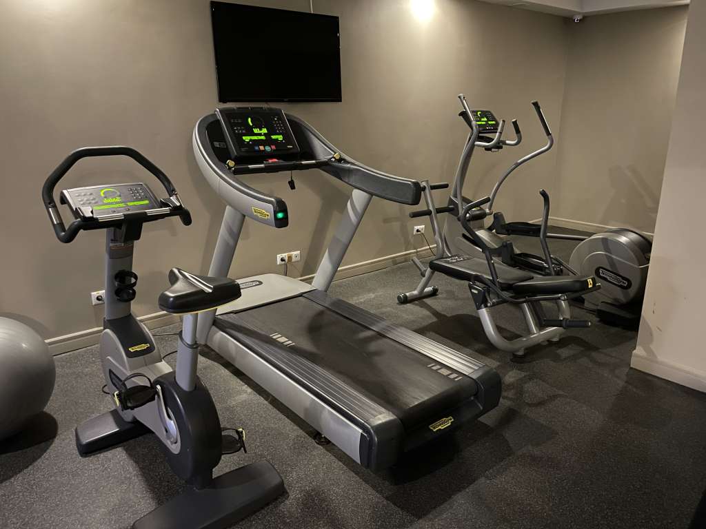 Der Fitnessraum wirkt etwas traurig im Keller, der über die Treppen hinter der Rezeption erreichbar ist. In einem dunklen Raum stehen primär Cardiogeräte. Dass der Raum nicht so intensiv genutzt wurde, darauf deutete auch der abgedeckte Wasserspender hin.
