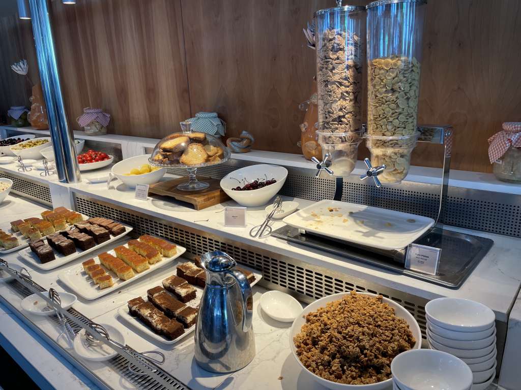 Das Frühstücksbuffet wird in einem Nebengang des Restaurants aufgebaut. Die Auswahl ist zwar nicht riesig, bietet aber alles, was man so für ein herzhaftes und auch süßes Frühstück benötigt. Und so gab es auch einige Dinge über das klassische Angebot hinaus (wie z.B. Fischaufschnitt).