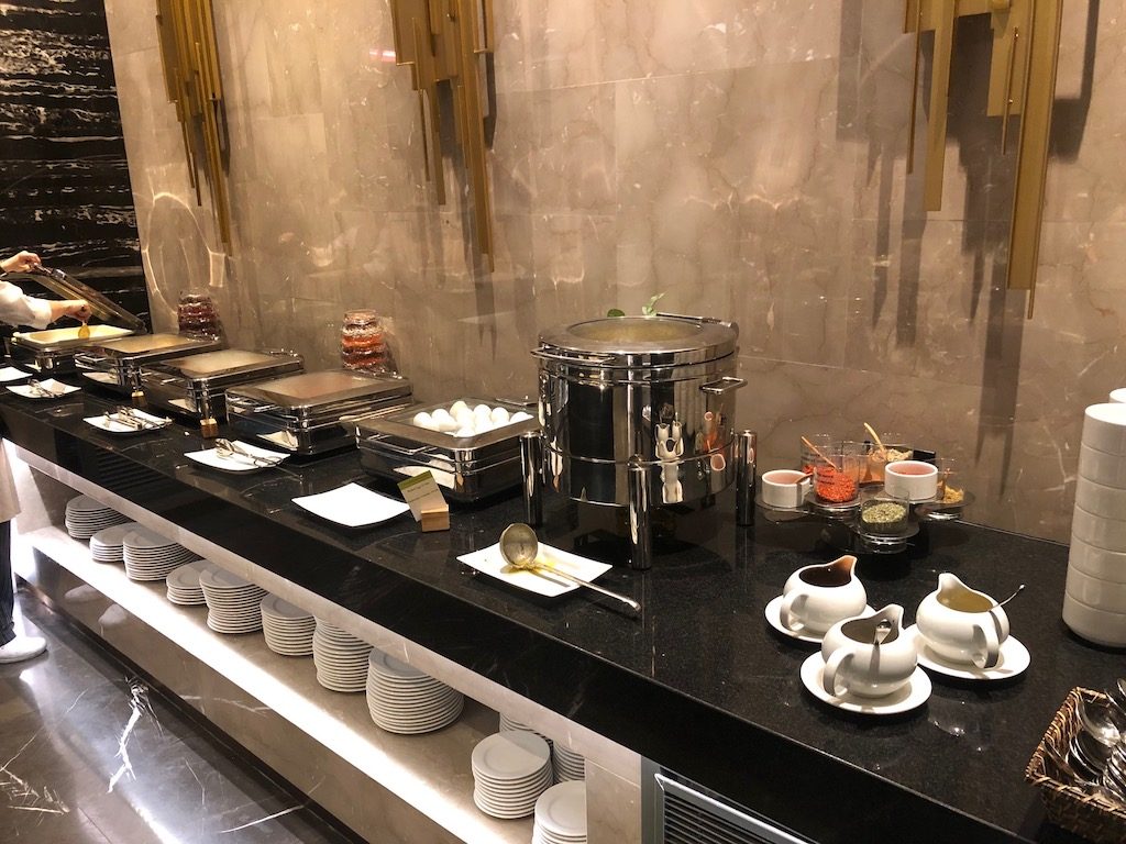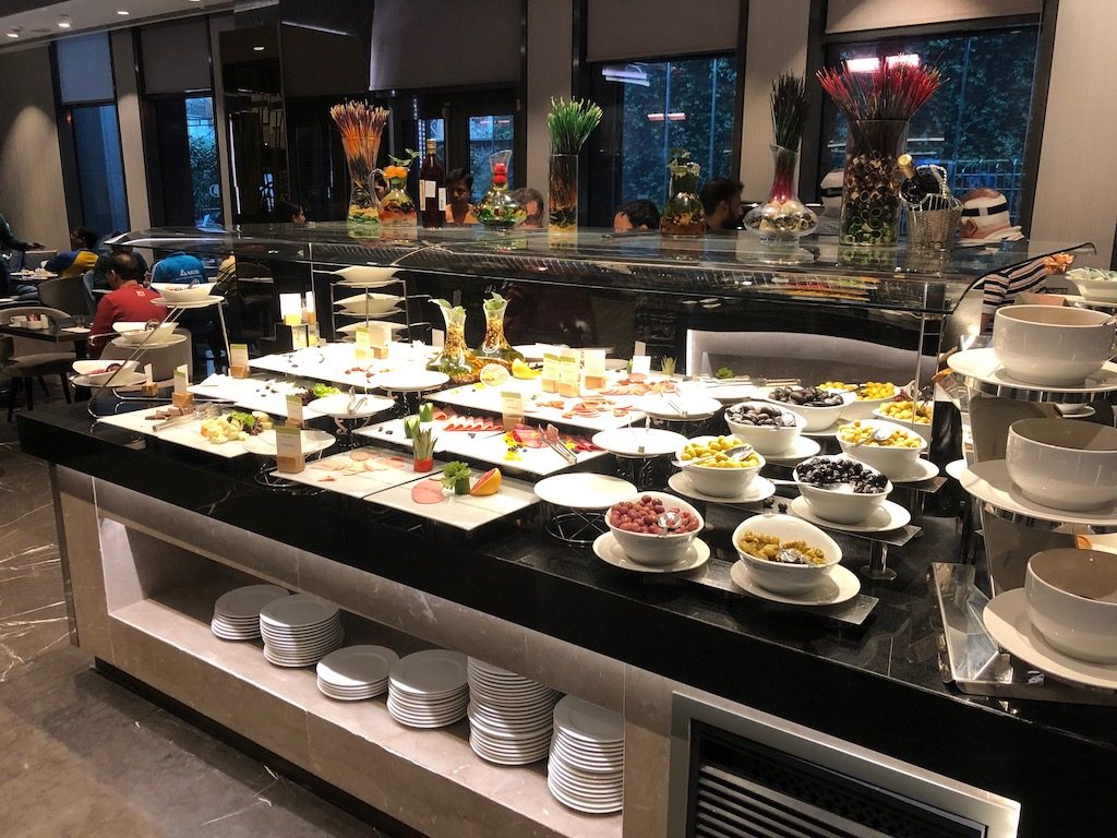An den Lobbybereich angrenzend befindet sich das Restaurant des Hotels. Hier wird auch das Frühstücksbuffet morgens angeboten, das ich aufgrund meines Hilton Honors Gold Status kostenfrei nutzen konnte.