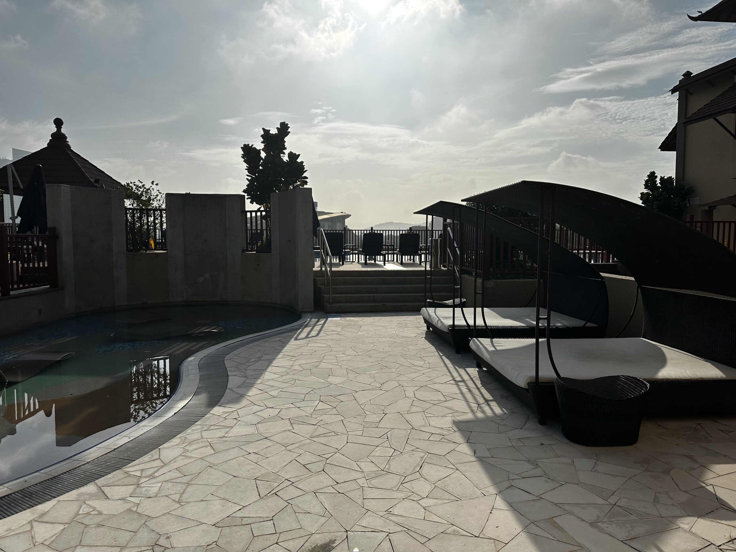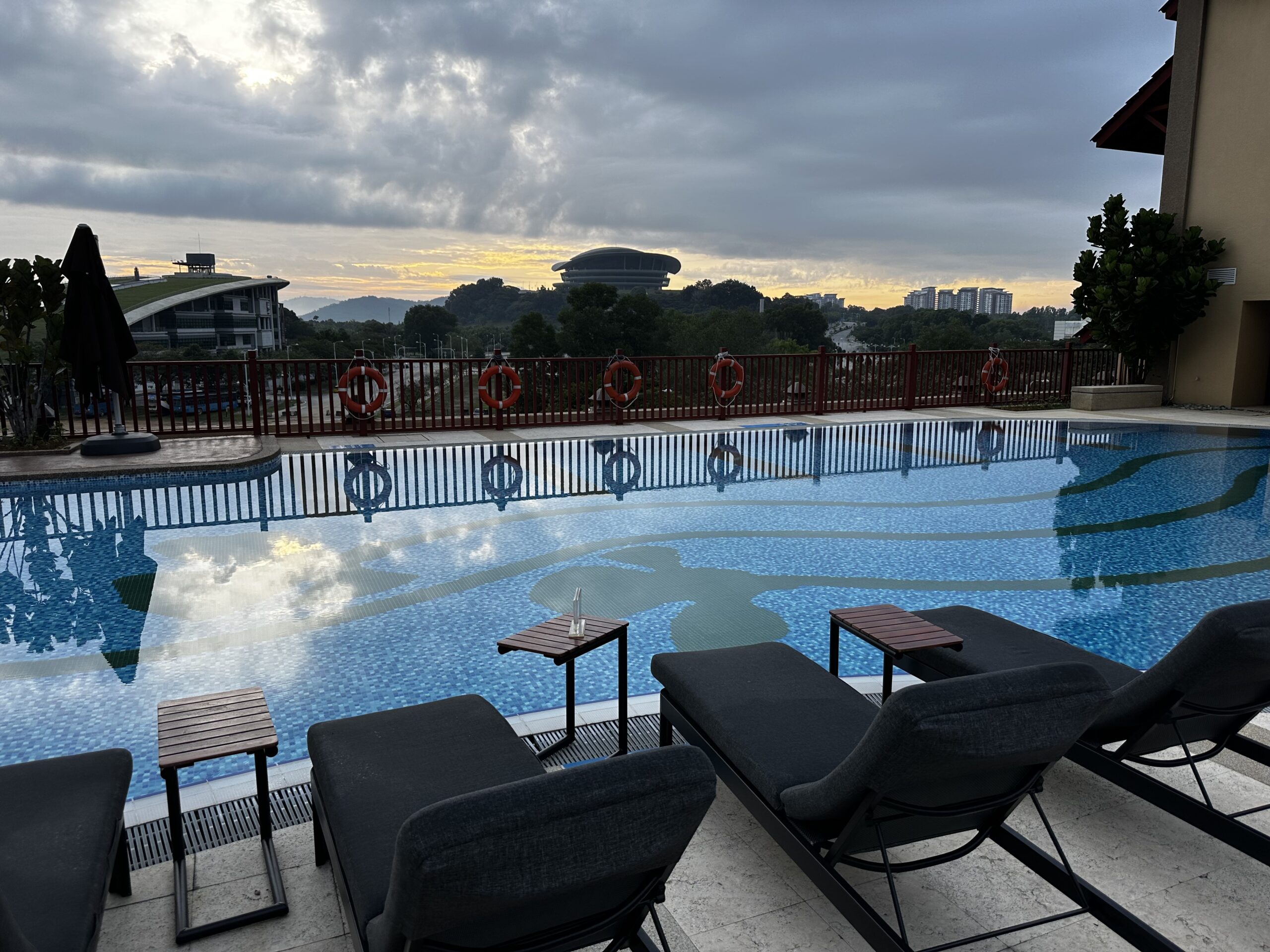 Der Zwischenstopp in Kuala Lumpur war kurz, ein Flughafenhotel hätte auch gereicht. Am Abreisetag hatten wir aber bis abends Zeit, ein Hotel mit Außenpool war daher unser Favorit. Um noch bei Hilton einen fehlenden Aufenthalt zu generieren, war uns ein Hotel der Kette am liebsten. Auf halber Wegstrecke zwischen Flughafen KLIA und dem Zentrum der Metropole liegt das DoubleTree Putrajaya Lakeside, es ist eines von sieben Hilton Hotels in Kuala Lumpur.