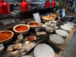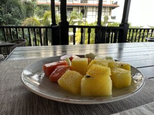 Im Hauptrestaurant wird morgens ein riesiges Buffet aufgefahren, es gibt Live-Cooking Stationen und auch einen Außenbereich mit Tischen. Neben indischen und lokalen Gerichten kann man auch typische Bestandteile wie Eierspeisen, Müsli, Brot, Joghurt, Obst, Kuchen usw. bekommen.