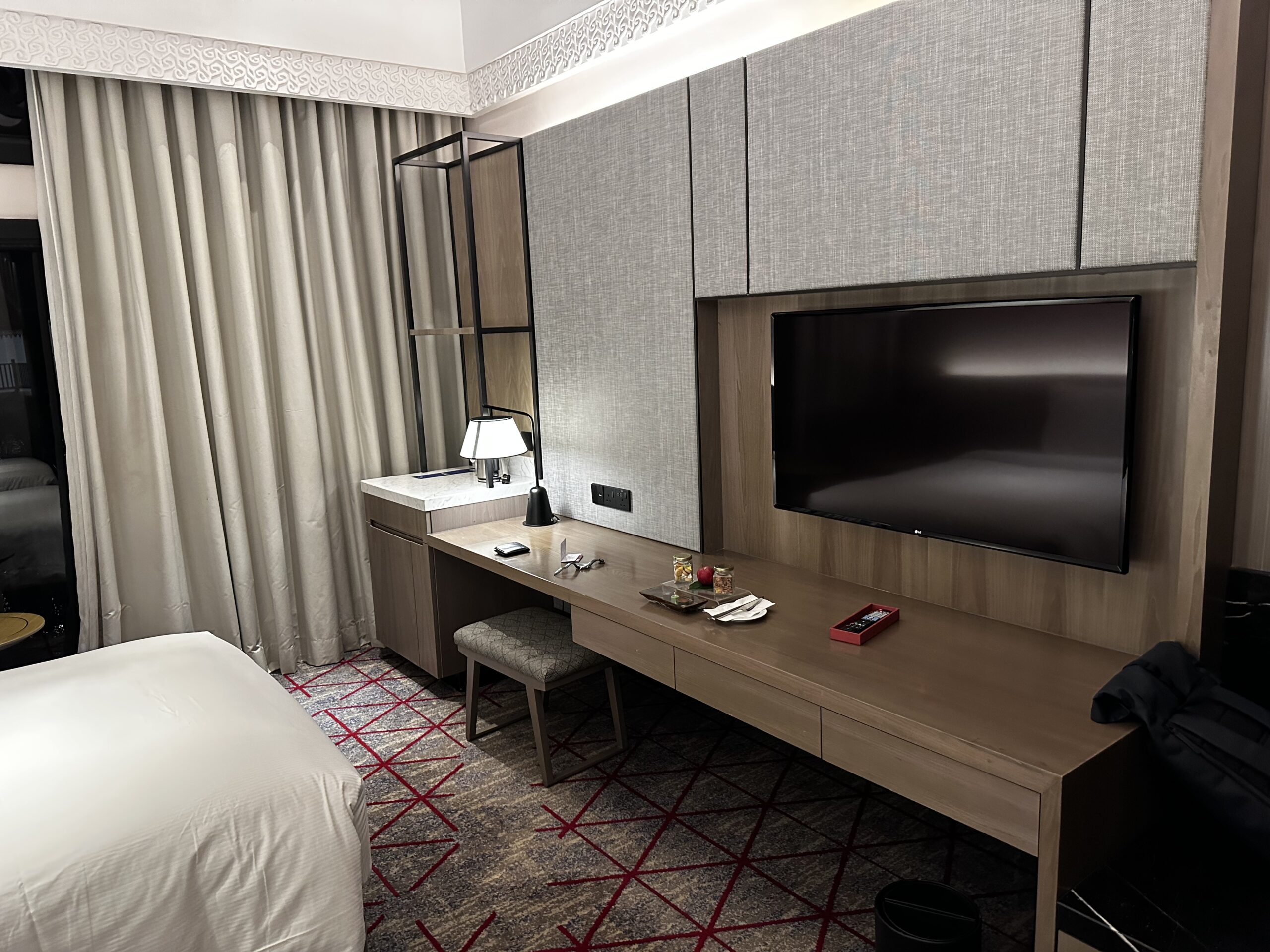 Das DoubleTree Putrajaya Kuala Lumpur eignet sich durch die Lage ganz gut für einen Zwischenstopp, wobei man oneway etwa 25 Minuten mit dem Taxi unterwegs ist. Das Hotel war mit knapp 80€ ziemlich günstig, an manchen Tagen gibt es Raten ab 55€. Statuskunden erhalten Frühstück und Bonuspunkte, nach Verfügbarkeit gibt es ein Upgrade und Loungezugang- spätestens dann wird es bei Preis/Leistung unschlagbar.