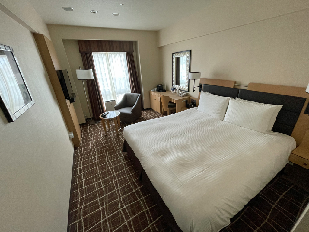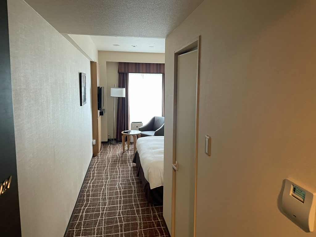 Das Zimmer ist verhältnismäßig klein, für japanische Verhältnisse jedoch schon fast groß, wenn man Business Hotels als Vergleich heranzieht.