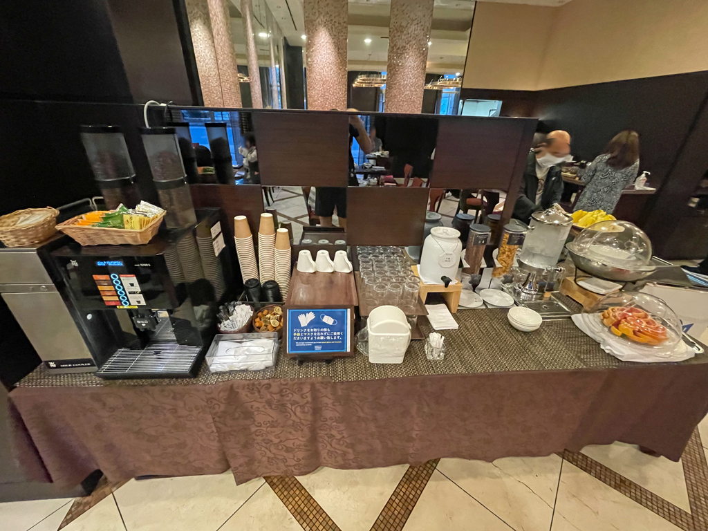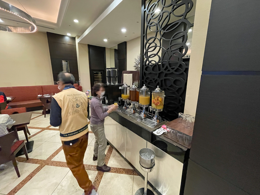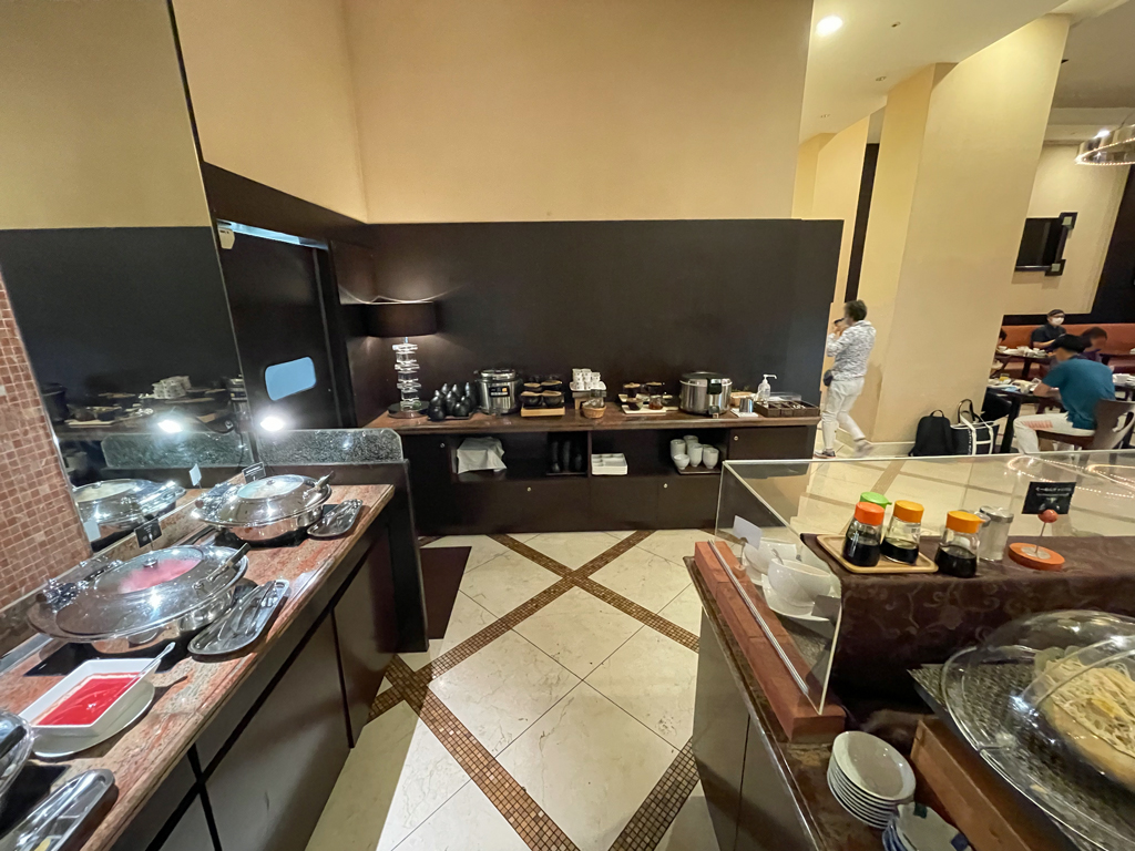 Die Auswahl an Getränken war ebenfalls groß. Es gab Smoothies, Obstsäfte, Wasser, Tee, Kaffee und Kakao. Bei den Heißgetränken hatte man freie Auswahl: Man konnte sie selbst am Vollautomaten ziehen oder damit einen der Kellner beauftragen. Wie so häufig in Asien gab es auch hier Eis bereits zum Frühstück.