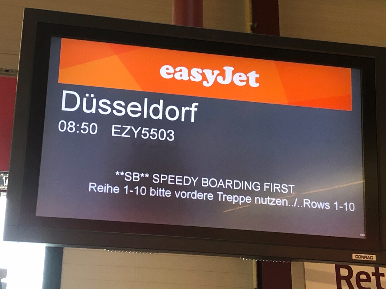Das Konzept für das Boarding bei Easyjet ist denkbar einfach: zunächst steigen alle „Priority Gäste“ ein, danach folgt der Rest. Leider wurde dies am Airport Berlin-Tegel nicht wirklich durch das Handlingpersonal umgesetzt bzw. kontrolliert. In Düsseldorf hingegen herrschte Ordnung beim Boarding.