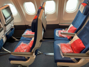 Bereits zum Boardingzeitpunkt lagen Kissen und Decken auf vielen der Economy Comfort Max Sitze bereit. Die Kabine war nicht vollständig mit damit versorgt, da die Auslastung bemerkenswert niedrig war. Auch die an Bord beworbenen Upgrades wurde nicht in Anspruch genommen. Daher reichten die zur Verfügung gestellten Kissen und Decken mehr als aus.
