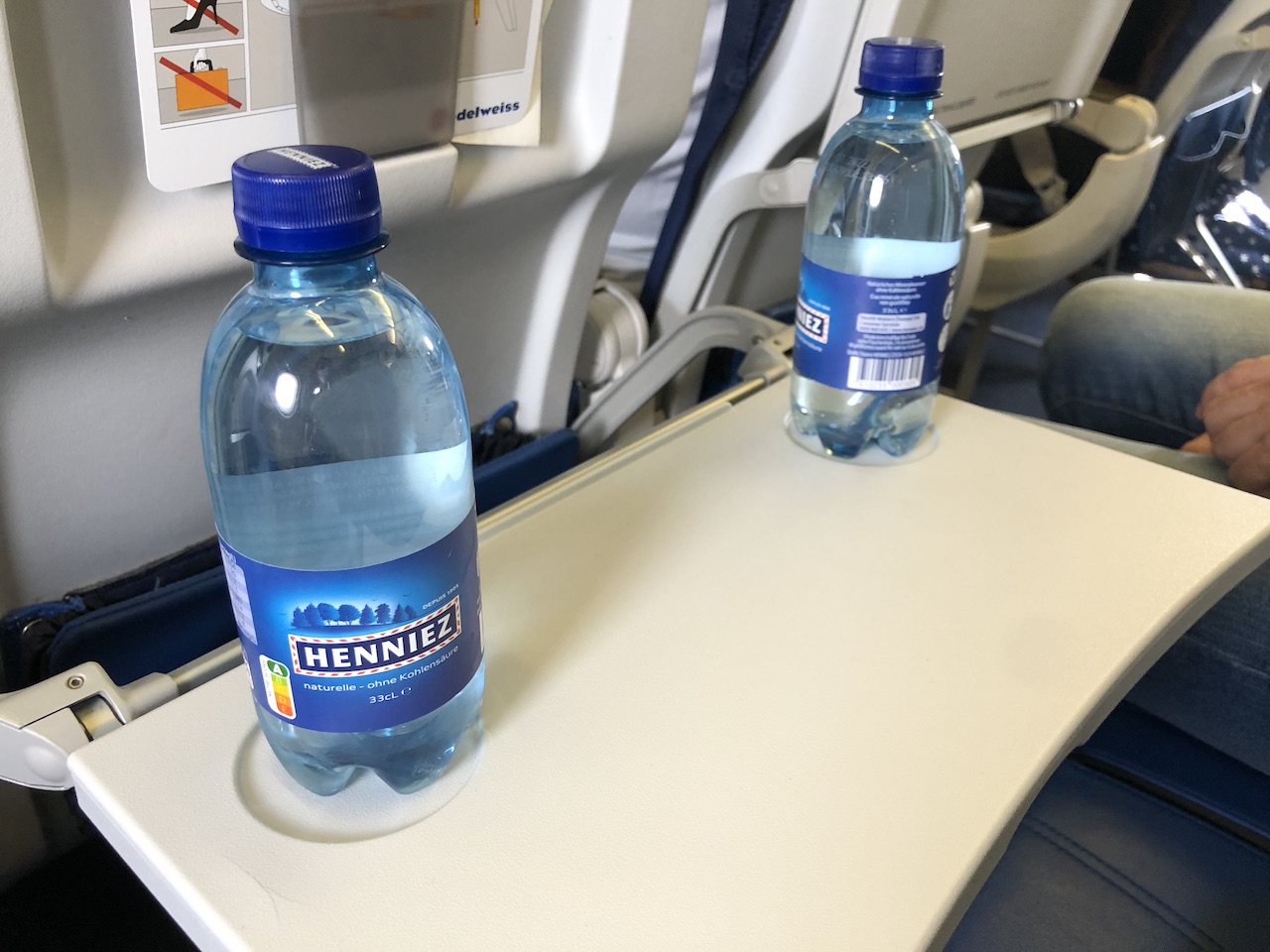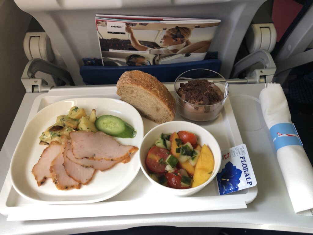 Bestuhlung und Kabine mögen nichts Besonderes sein, Edelweiss punktet aber im Vergleich mit Lufthansa mit einigen Kleinigkeiten wie dem Entertainment oder Champagner auch auf kurzen Strecken. Das Catering war nicht atemberaubend, für den Flug aber absolut ausreichend.