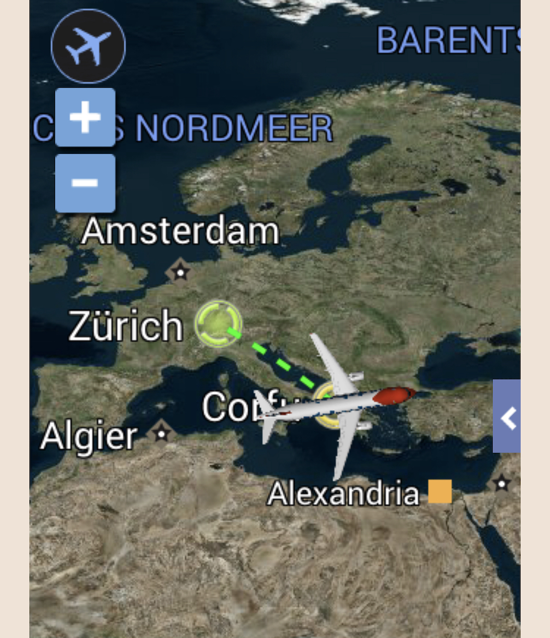2. Und wo versteckte sich die „Airshow“ auf dem WK-Flug mit A340 nach CPT ?