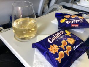 In der Luft wurden wir dann mit Getränken und salzigen Crackern versorgt, während Passagiere in der Economy Class ebenfalls in den Genuss von einigen inkludierten Snacks kamen. Dort werden Softdrinks & kleine Sandwiches ausgeteilt, andere Bestandteile können im Bordverkauf erworben werden.