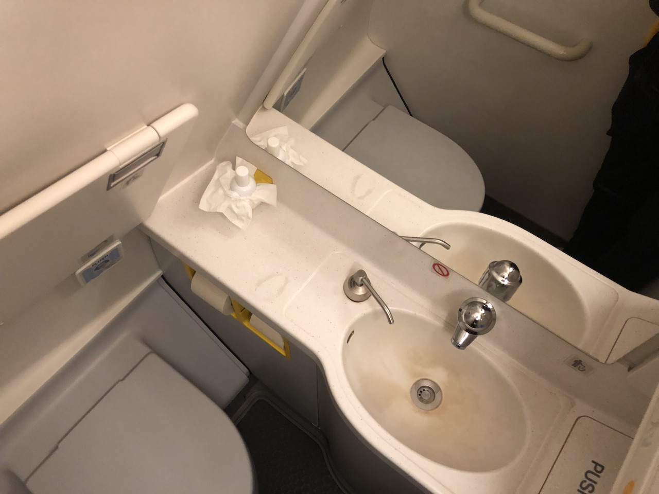 Selbst im Waschraum war das Logo der Gesellschaft präsent.